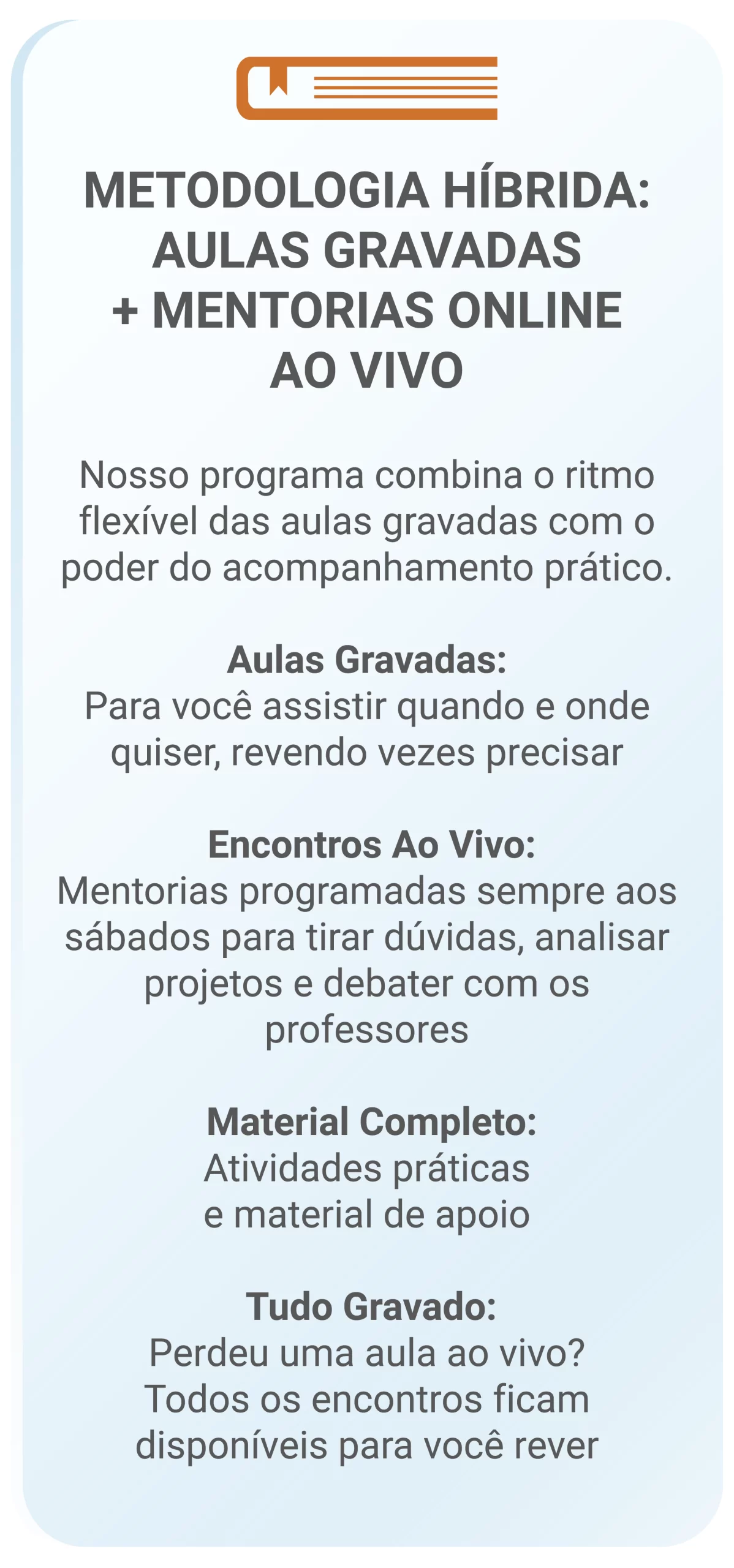 Metodologia Híbrida: Aulas Gravadas + Mentorias Ao Vivo